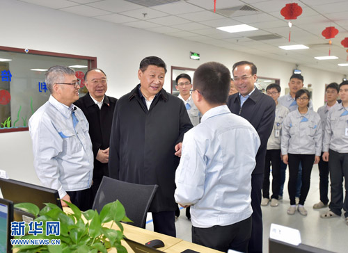 1月4日至6日,中共中央总书记、国家主席、中央军委主席习近平在重庆调研。这是1月4日下午,习近平在考察重庆京东方光电科技有限公司时勉励研发人员大胆创新。