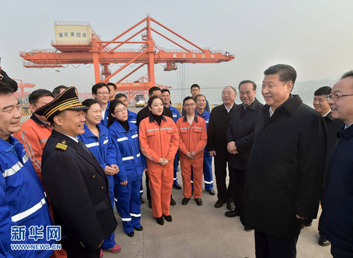 冬日的山城,寒气中和着丝丝暖意。1月4日至6日,习近平在中央政治局委员、重庆市委书记孙政才和市长黄奇帆陪同下,深入港口、企业考察调研,就贯彻落实党的十八届五中全会精神和中央经济工作会议精神进行指导。